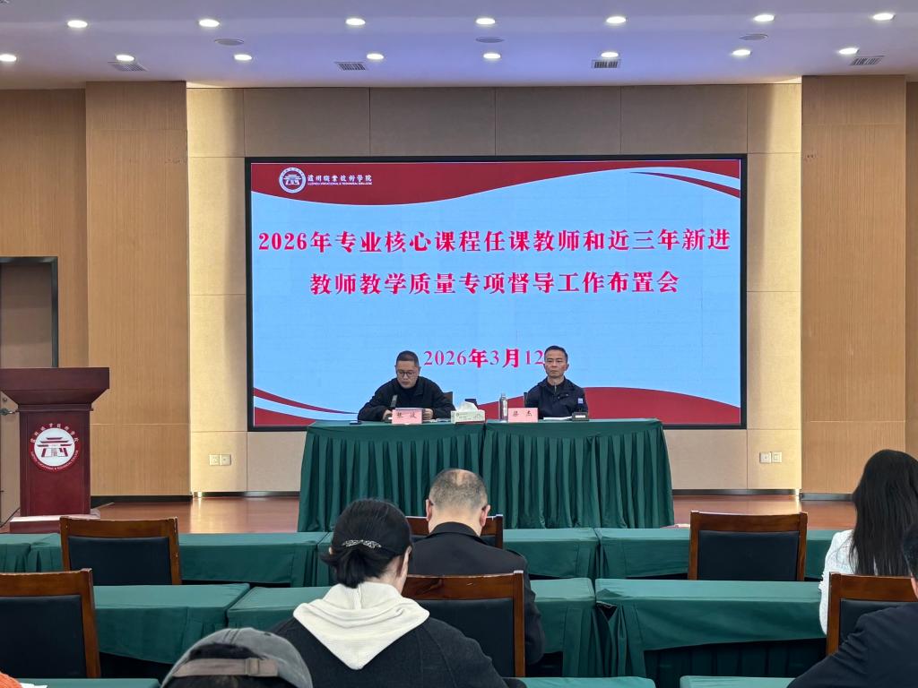 为深入落实学校 “内涵建设提升年” 工作要求,紧扣办学质量评价迎评工作重点,全面部署2026年专业核心课程任课教师及近三年新进教师教学质量专项督导工作,3月12日下午,学校在求是厅召开2026年教学质量专项督导工作布置会。学校党委常委、副院长梁杰出席会议并作重要讲话,会议由学校教育督导中心主任张波主持,各二级学院教学管理人员、全校专兼职督导员参加本次会议。